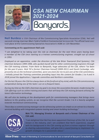 Neil Burdess is 15th Chairman of the Commissioning Specialists Association (CSA). Neil will