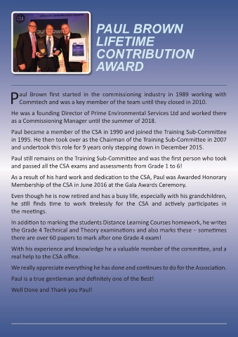 As a result of his hard work and dedication to the CSA, Paul was Awarded Honorary