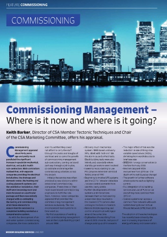 staff were becoming more and more experienced commissioning • Further developments of these services and use of PLCs to run Today’s commissioning manager right will not diminish – see 1 above. saves money in the long term. the project management sphere.