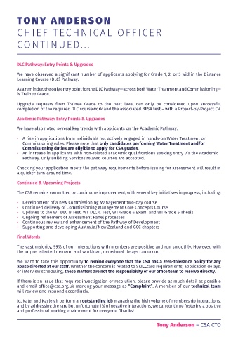 The CSA remains committed to continuous improvement, with several key initiatives in progress, including: